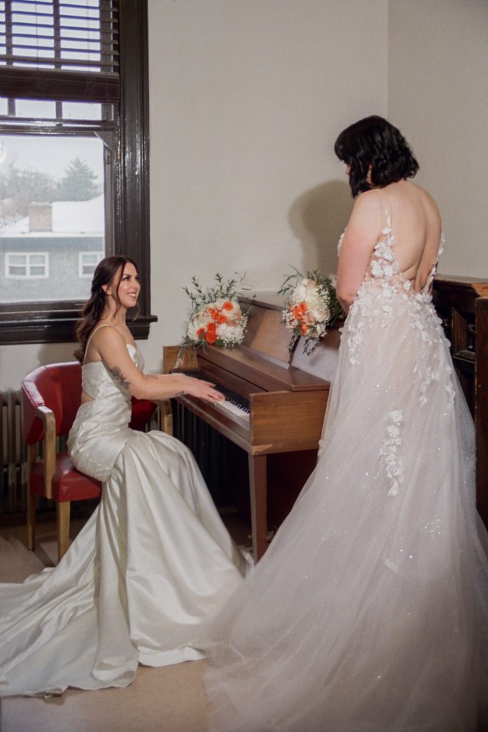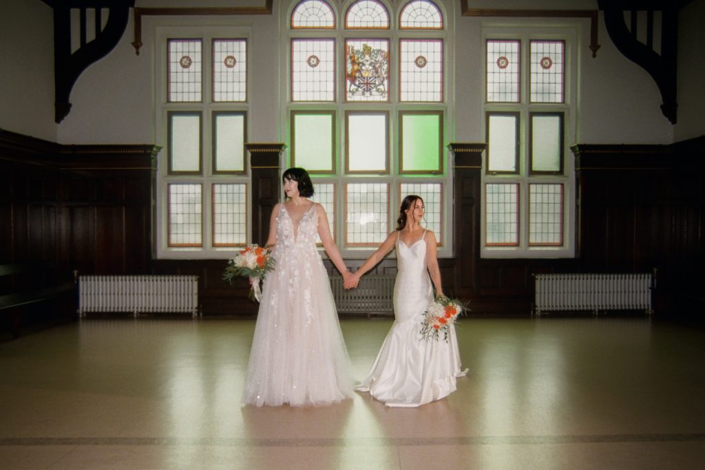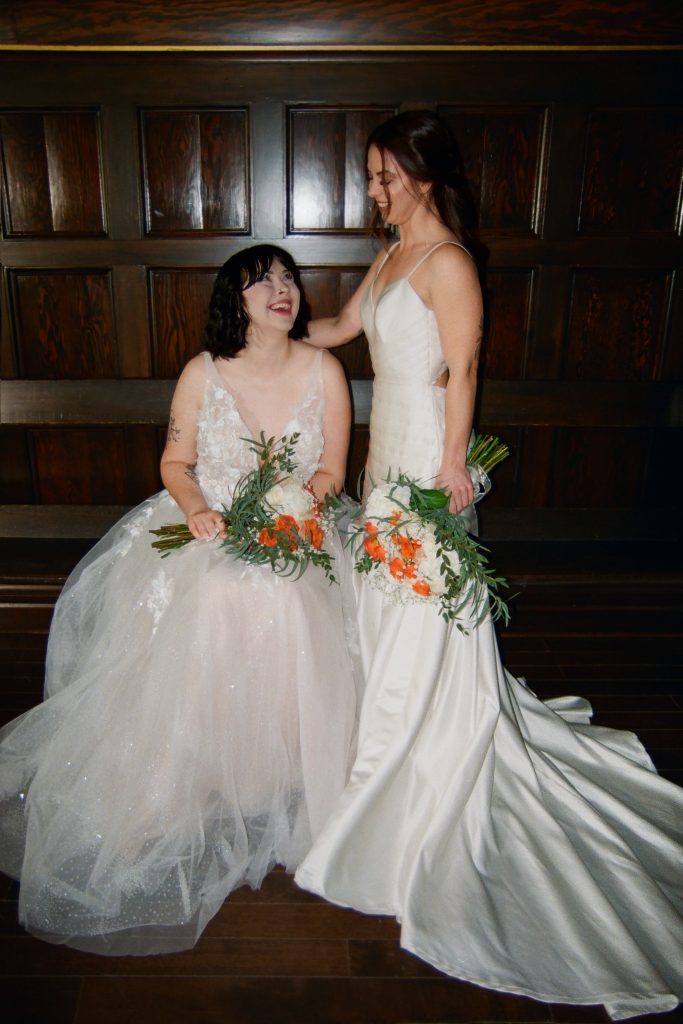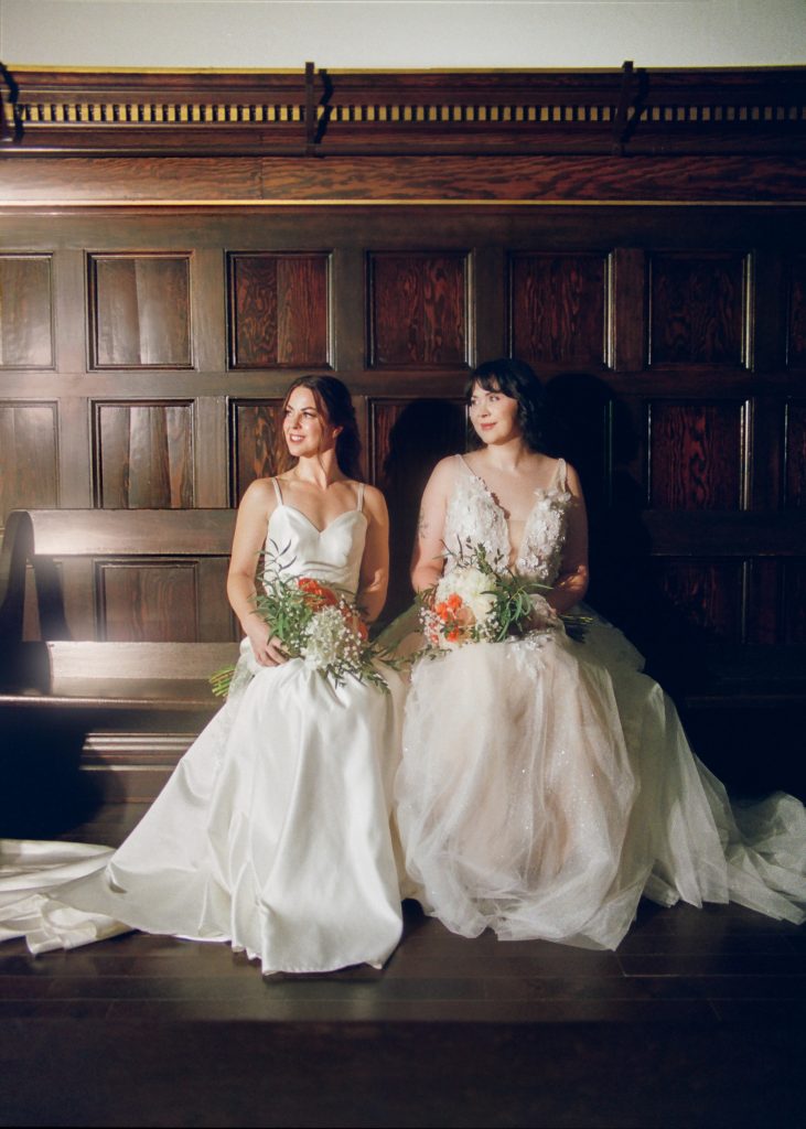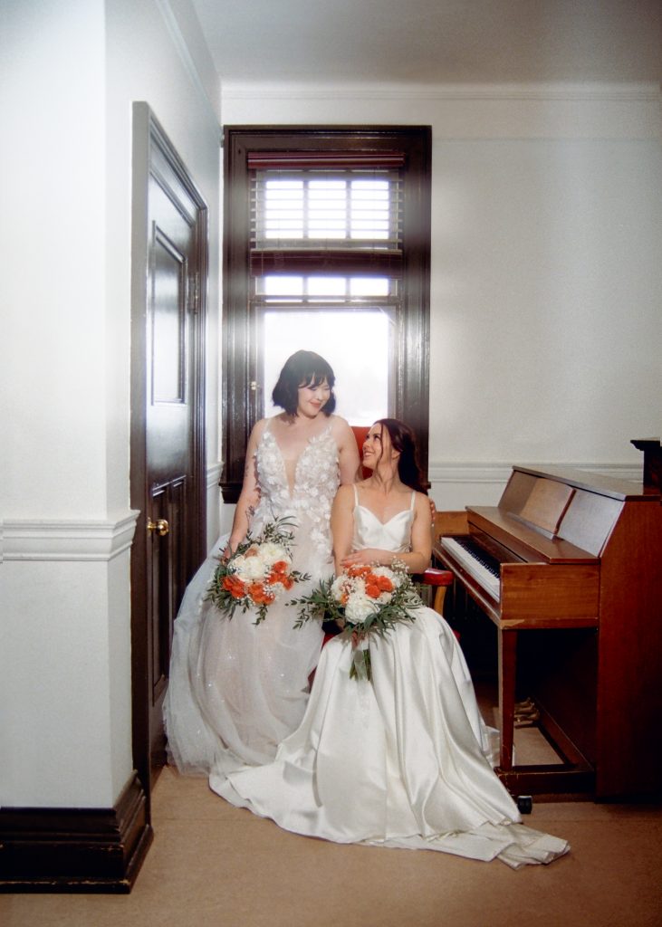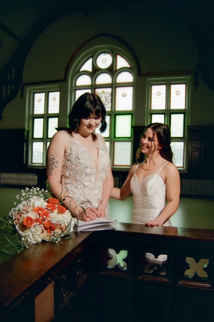 Brooke and Kristy started the day at Gemini Salon, then finished getting ready in the basement of the courthouse. We imagined an elopement day where the brides enjoyed getting ready together, incorporated their personalities into the day (those cheetah print shoes!), and soaked in the magic of the quiet courthouse.