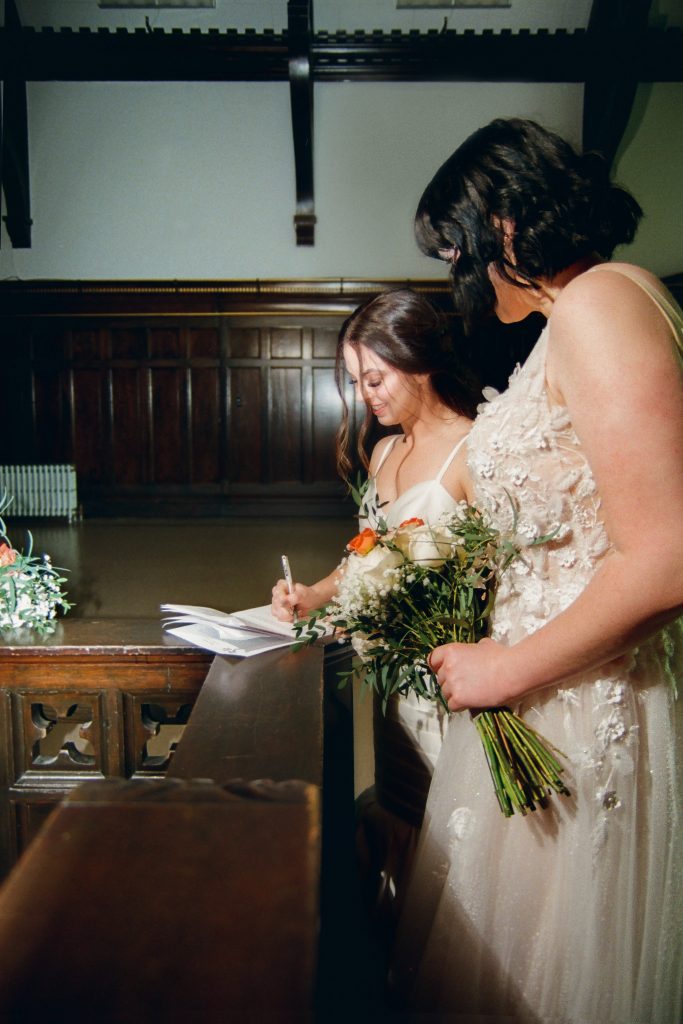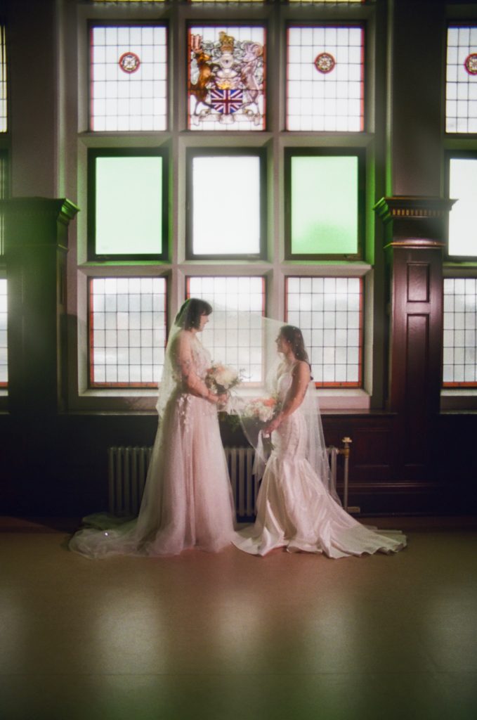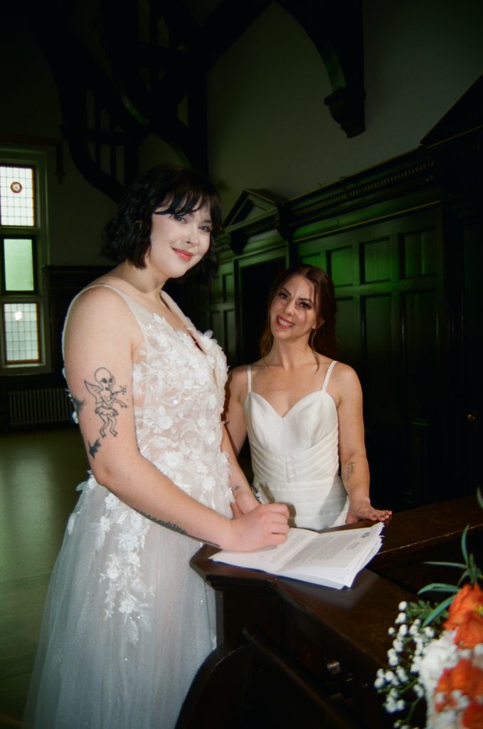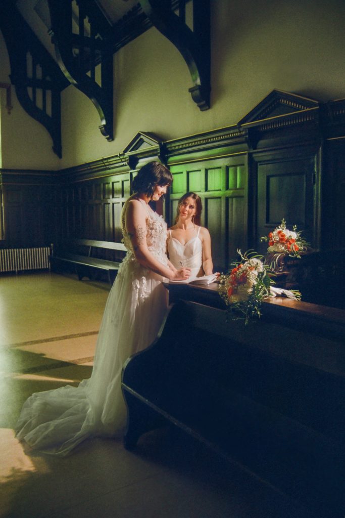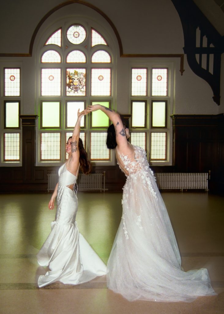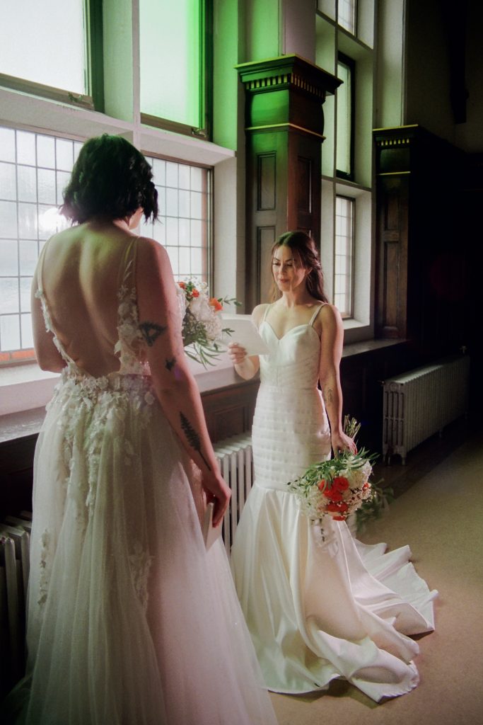 Brooke and Kristy started the day at Gemini Salon, then finished getting ready in the basement of the courthouse. We imagined an elopement day where the brides enjoyed getting ready together, incorporated their personalities into the day (those cheetah print shoes!), and soaked in the magic of the quiet courthouse.