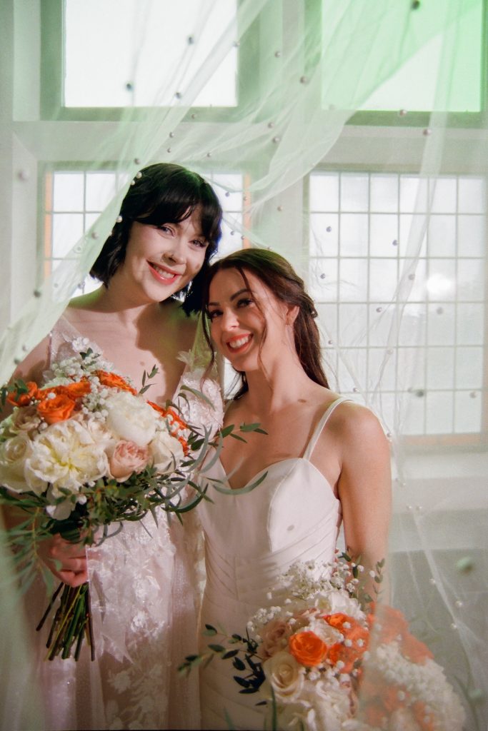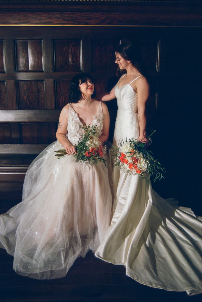 Dresses by Wattie Rd Bridal, and florals by Lily Lane Floral Co.